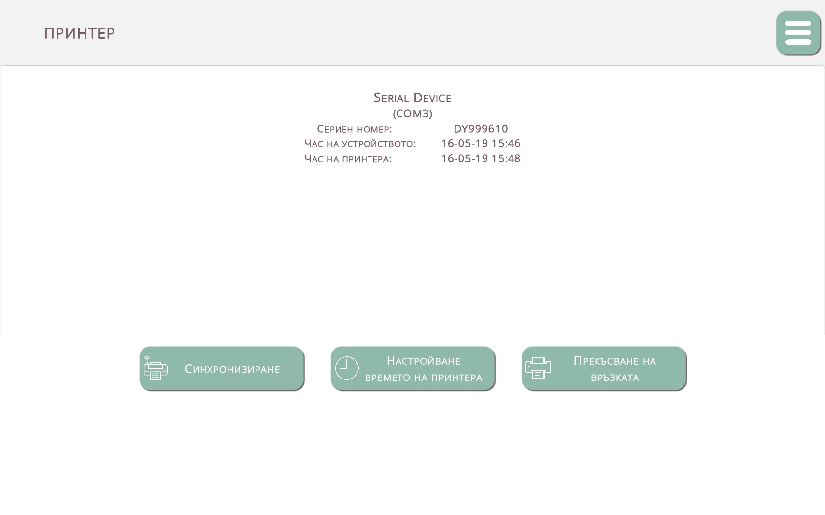 | Връзка с фискален принтер (bluetooth, usb) | ||